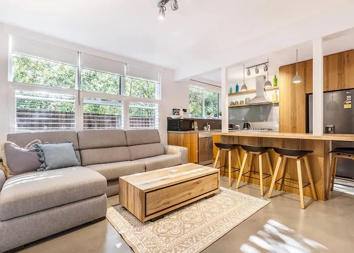 'Cedar Loft' Contemporary Comfort In Leafy St Kildaアパ-トメントには,器具でいっぱいの台所,ソファ,コ-ヒ-/紅茶メ-カ- と高速インタ-ネット付きの客室があります. この1のベッドル-ムのあるアパ-トメントはNgargee Treeから徒歩5分以内に位置しています.